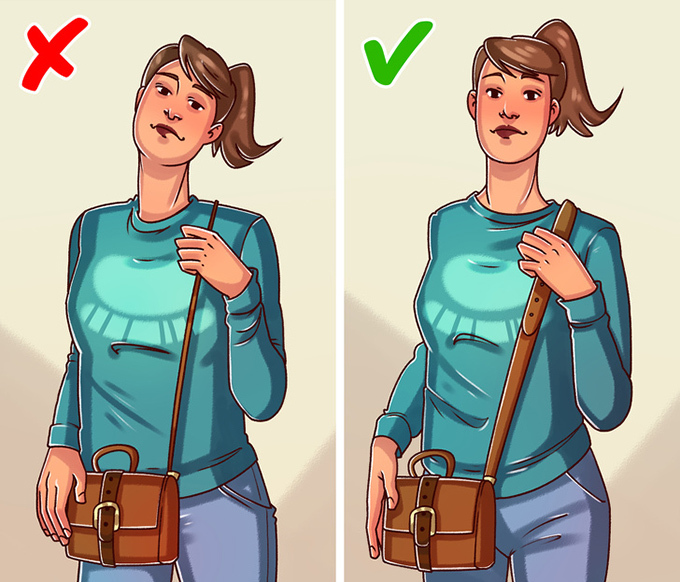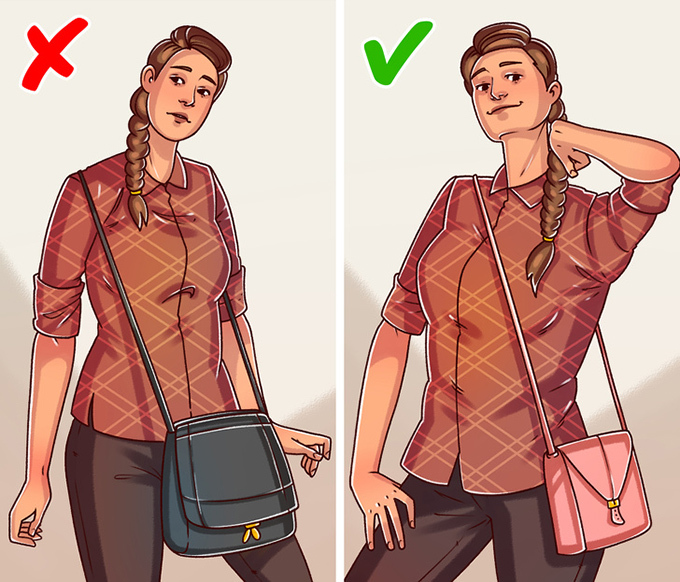 Với túi quai dài, bạn nên đeo chéo