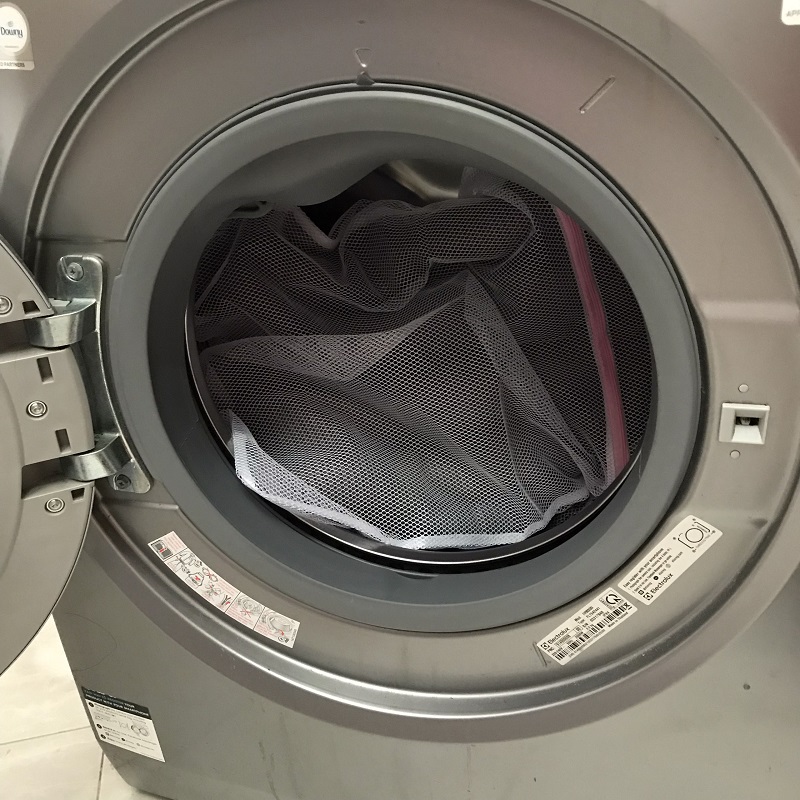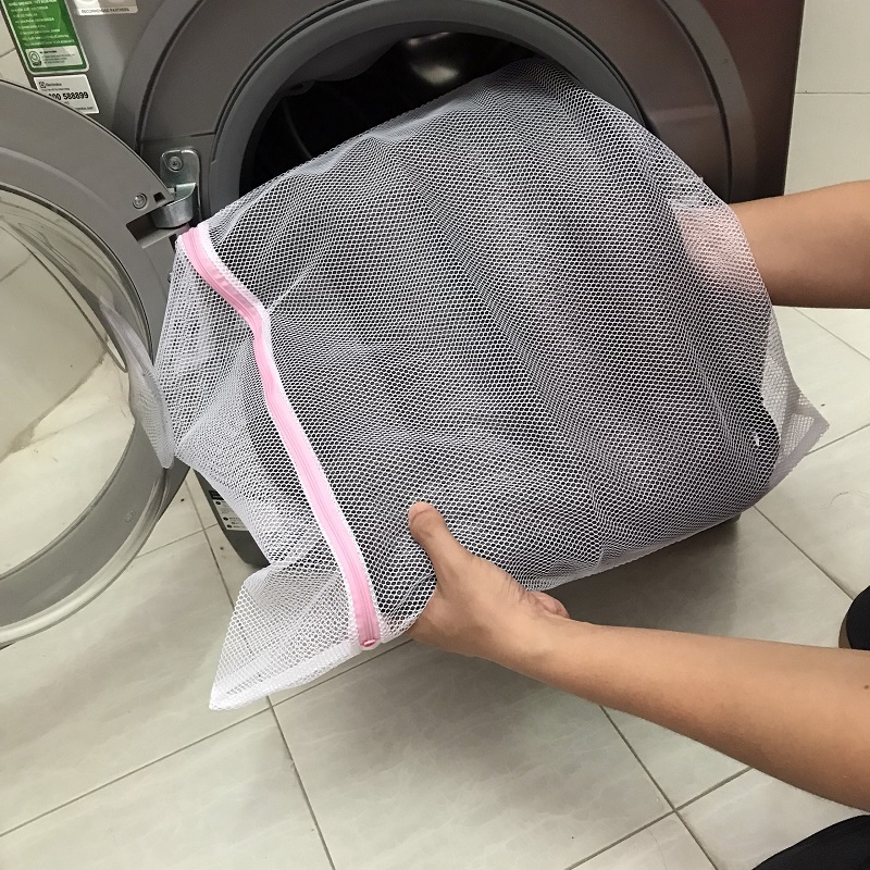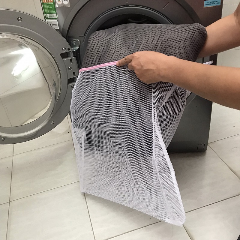 Bạn chỉ việc cho nguyên chiếc đệm vào túi giặt và cho vào giặt bằng máy giặt như quần áo bình thường là được.