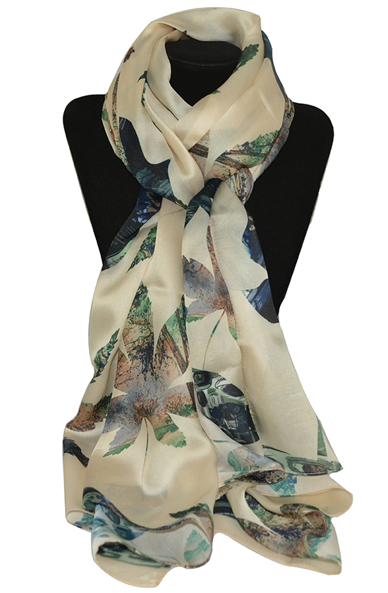 Khăn lụa KL444 chi tiết mô tả về khăn - trẻ trung duyên dáng và nữ tính với họa tiết hoa lá nhiều màu
