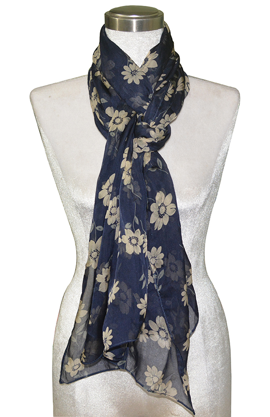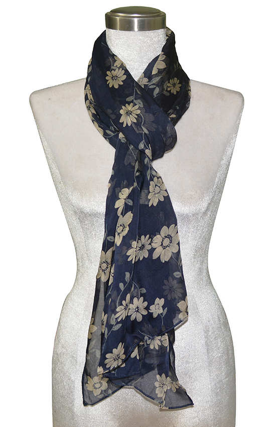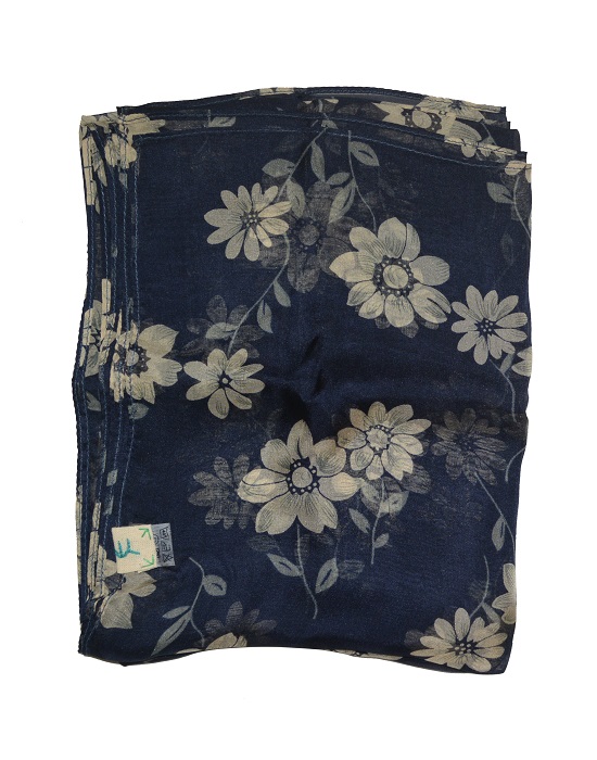 Khăn lụa tơ tằm KL737 - mềm mại, nhẹ nhàng và sang trọng với hoa trắng sữa trên nền tím than